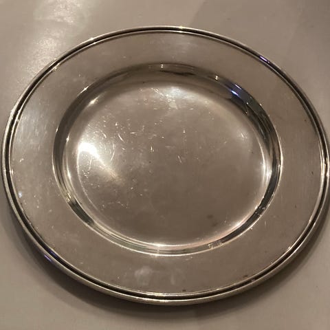 Tre små franske antikke vintage fade / tallerkener med dekoration i midten og bølget kant. Motiverne omfatter blandt andet våbenskjold, fugl og krone med ornamentik omkring. Velegnet som dekoration eller til brug som serveringsfade. Tallerkenholdere til ophæng på væg medfølger. De stammer fra den kendte, franske tinproducent Varido Etanier. Prisen er pr. stk. Køber du alle tre, så 400 i alt.