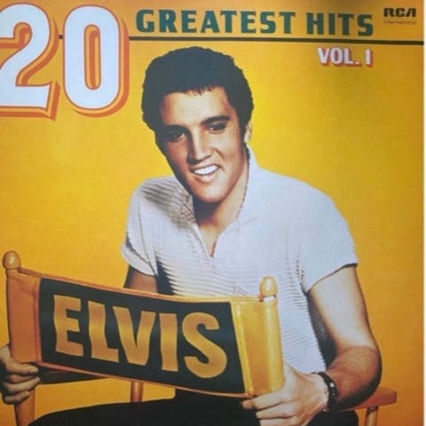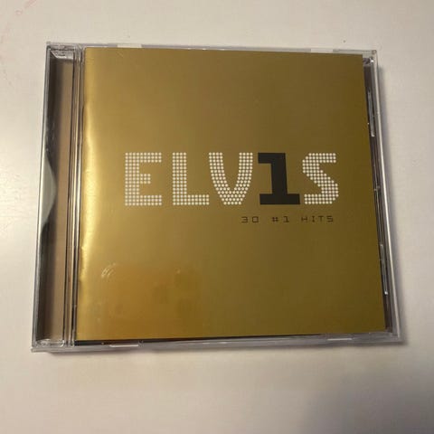 Elvis "30 #1 Hits" vinylplade. Opsamlingsalbum med 30 af kunstnerens største hits. Cover i gylden farve med titeltryk på forsiden. Velegnet til pladesamling og afspilning på pladespiller.