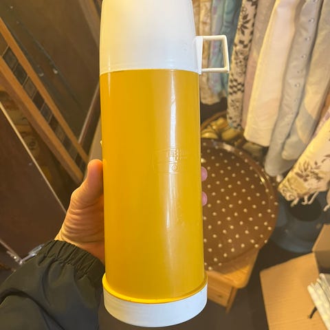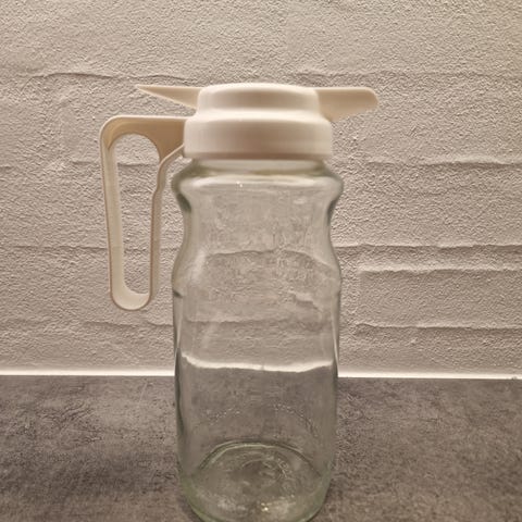 Ældre kande- Sunguick, design fra 1980`erne. Mener den rummer ca 1 liter. Med gult skrue låg. Velholdt. Har bl.a været brugt som dekoration butik.