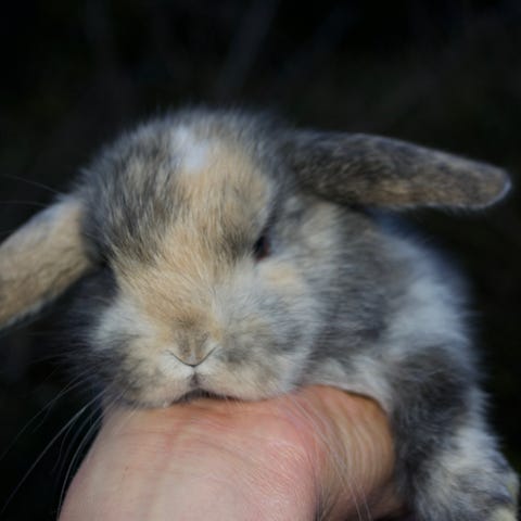 Tam og kælen beige og hvid plettet kaninunge dreng. Han h er i hænder dagligt, hans øjne er brune. Velegnet til børn. Kan flytte hjemmefra d. 7. marts.