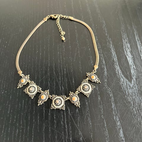 Halskæde, bijouteri, Pilgrim Vintage, Kæde længde 35 cm kan forlænges med 8 cm og meget smukt vedhæng med sten 10 cm.