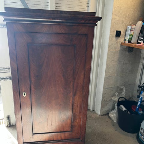 Gammelt mahogni sølvtøjsskab, Arveting