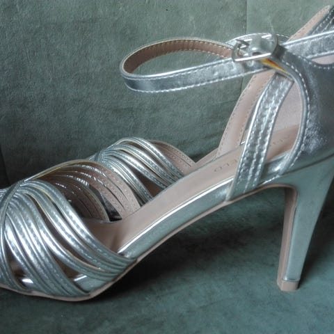 Åbne sandaler med høj hæl og justerbar rem om anklen. Farven er nude/lysebeige. Overdel i ruskind med udskæringer foran og åben tå. Smal hæl med klassisk form. Velegnet som damesandal til fx hverdag eller mere formelle anledninger.