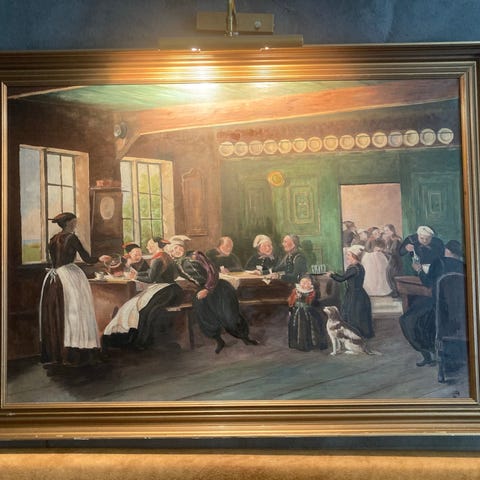 En meget fin kopi af Julius Exners Episode af et gilde på Amager fra 1853. Kopien er malet omkring 1920. Mål H 84 x B 110,5