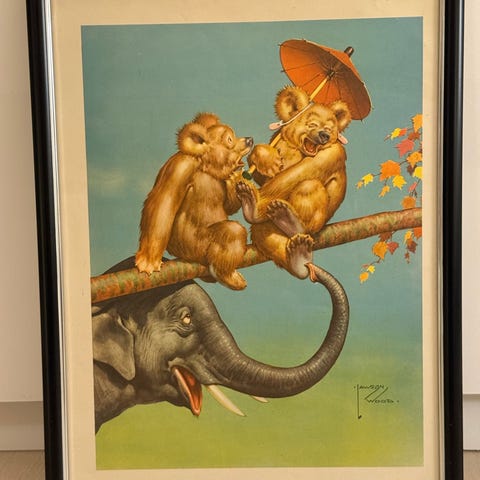 Gammelt Lawson wood tryk I egetræsramme. Det måler ca 28x37 cm