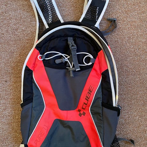 Rygsækken indeholder regnslag og net til cykelhjelm eller andet.