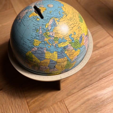 Produktet er en globus, der viser månens overflade med detaljerede kort. Den har en rund form, er opdelt i to halvdele og har en skinnende overflade med forskellige nuancer af grå, blå og beige. Den står på en simpel, lys beige holder og har en låsemekanisme med en nøgle.,Bemærk at mail, chat og beskeder ikke besvares, og varen skal købes på knappen "Gå til varen"