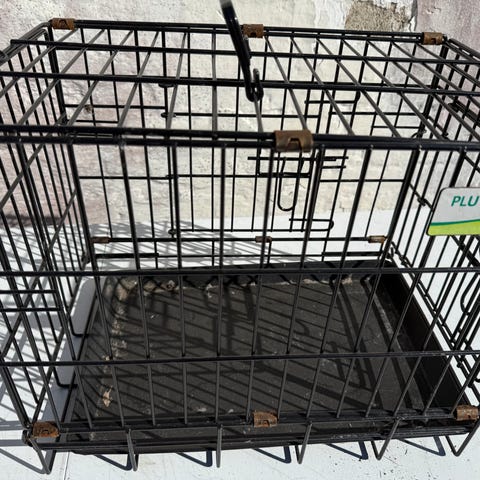 Sort trådbur med aftagelig plastbakke i bunden. Buret er 108 cm langt, 70 bredt og 80 cm højt. Det har lige både i siden og i den ene ende, så det kan placeres hensigtsmæssigt. Kan klappes sammen til ca 10 bredde for nem opbevaring. Buret er næsten som nyt.