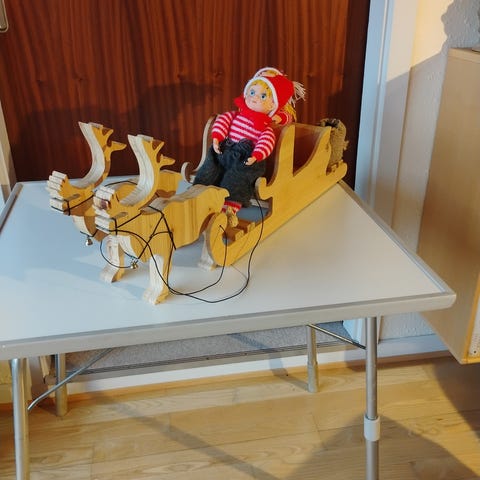 Andre samleobjekter, Julekane / kan i træ til dekorationer, Der er her tale om en unik lille bemalet ældre julekane / kane i træ