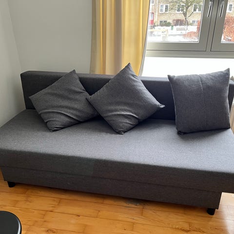 Sovesofaen skal afhentes på 2. sal på Amager.