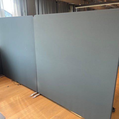 Rumdeler bestående af tre sammenhængende paneler. Leveres med tilhørende fødder og beslag til montering, så væggen kan stå frit på gulvet. Velegnet til opdeling af rum, afskærmning af arbejdsplads eller som midlertidig rumdeler i hjem eller kontor.