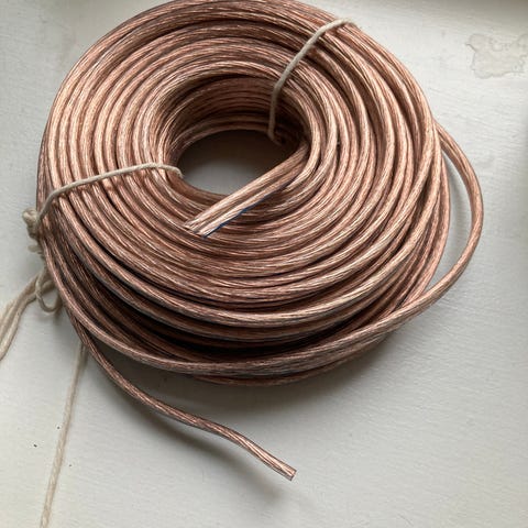 Superflatline 3m højtalerkabel i kobberfarvet udførelse. Kablet er fladt og er forsynet med stik i begge ender