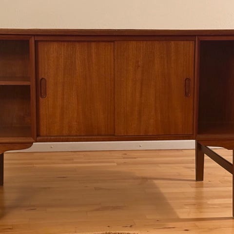 Skrivebords kabinetmodul i teak med flettet front fra serien Royal system.