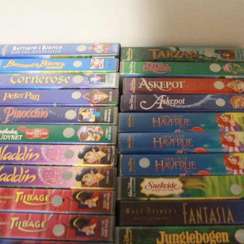 Blandet samling Disney VHS videobånd. Samlingen indeholder flere klassiske Disney-tegnefilm på VHS, herunder blandt andet Toy Story, Pinocchio, Aladdin og andre titler. Velegnet til samlere af Disney-film på videobånd eller til brug, hvor VHS-format ønskes bevaret.