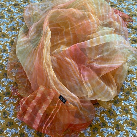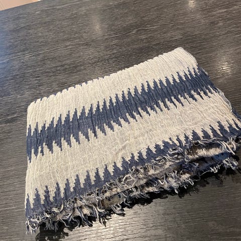 Super fint og fejler intet - aflang tørklæde farve lyse lilla med motiv. Materiale se billedet.