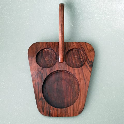 Teaktræs fade fra Combiwood by Lundtofte Denmark. Salat faddet har en lille svind revne uden betydning.