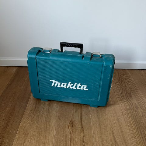 Opbevaring Makita Macpac den store model. Har et gennemslag på låg med lille flænge 5cm, men ellers fungerer den som den skal.
