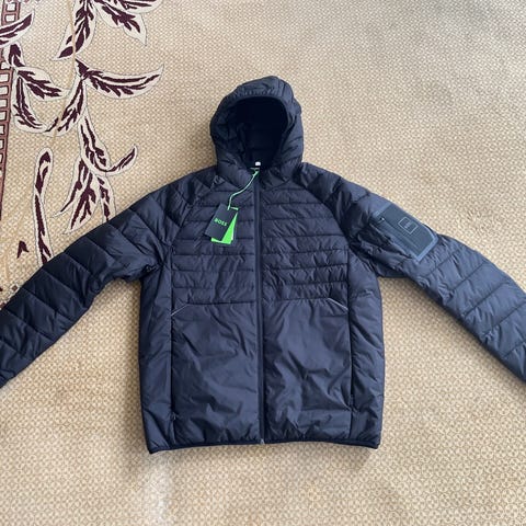Hugo Boss jakke til mænd i str. XL. Jakken er grå og fremstillet i uld med quiltet foer indvendigt. Modellen har frontlukning, brystlommer med klap og sidelommer. På ærmet sidder et Hugo Boss-logo. Jakken er egnet som yderjakke i køligere vejr og har et klassisk, neutralt design, der passer til både hverdagsbrug og mere formelle anledninger.