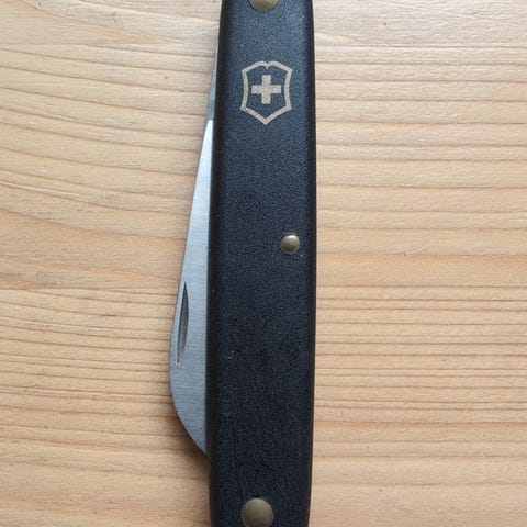 Med kniv, saks, neglefil, skruetrækker, pincet og tandstikker.