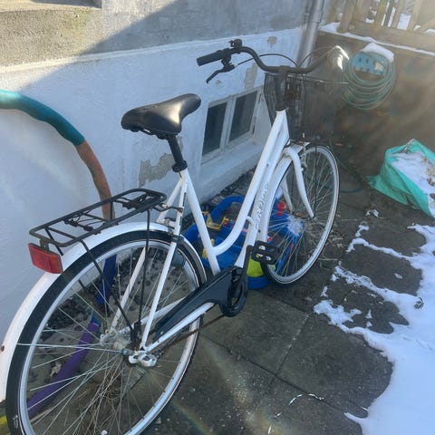 X-Zete damecykel med 7 gear ringklok bag lykter sikkerhed lås med nøgler og kurv stel storrelse 52 cm dæk 28 tommer ny service den kører som den skal hybridcykel til kvinder med lav indstigning. Cyklen har stelstørrelse XL og 28"/700c hjul. Udstyret med for- og bagskærme, bagagebærer og fastmonteret frontkurv. Velegnet til hverdagskørsel og pendling i byen på grund af den oprejste og komfortable kørestilling.