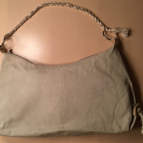 Skuldertaske i sort Lærred, mrk. Bitte, med hele 6 rum. Som ny
