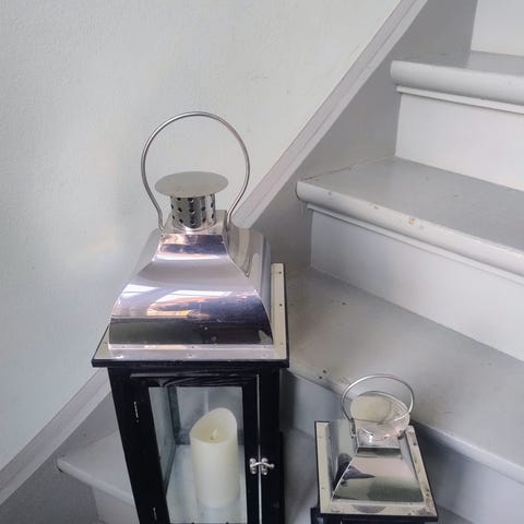 Dette er en meget smuk lanterne. Lavet af metal med en flot messingfinish, og særligt smuk, når der er et stort lys tændt.
