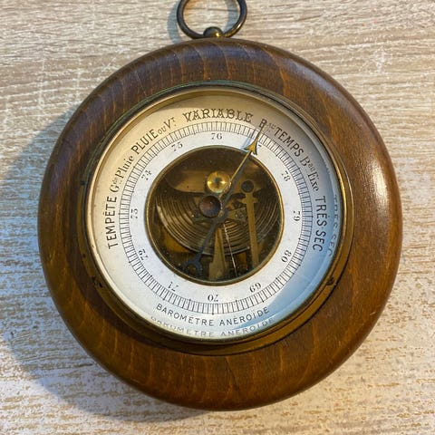 Ure, Barometer termometer 60erne mahogni messing, Sund o