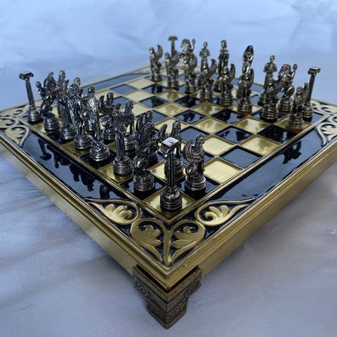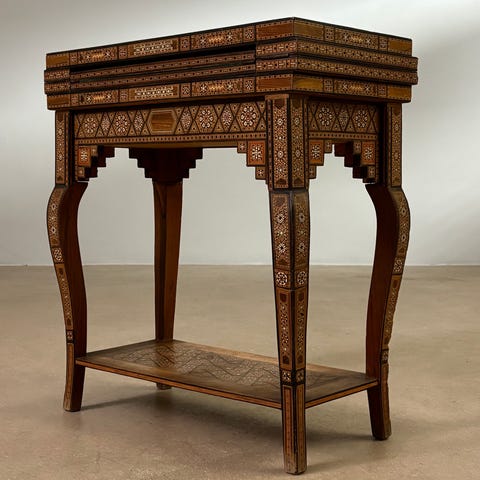 Dekorativt og funktionelt skakspil i oliventræ, håndlavet i Tunesien.