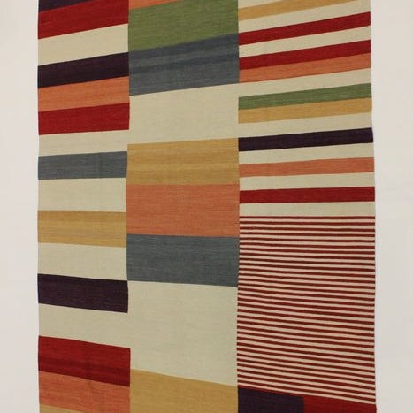 Tilbuddet er et moderne designer-kelim fra Pakistan.