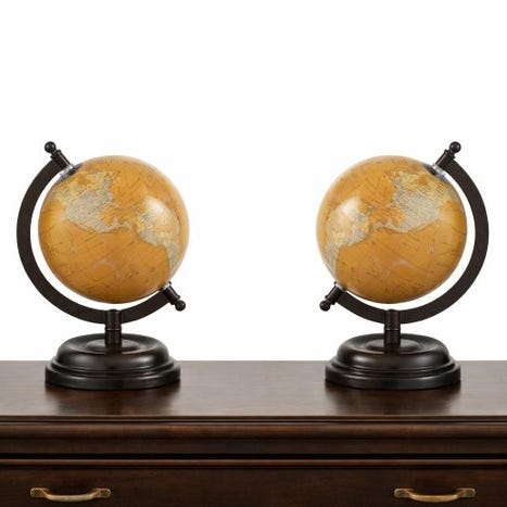 Globus - Mapa mundo realizado en Bronce y madera 43 cm de alto - 1970-1980
