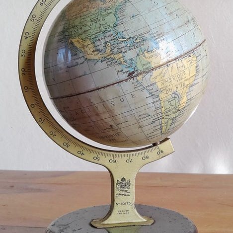 Det drejer sig om en metallglobus, formodentlig fra 1950'erne eller 1960'erne.