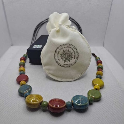 Elegant håndlavet halskæde i ægte Murano-glas, fremstillet efter de traditionelle muranesiske teknikker.