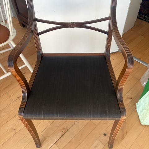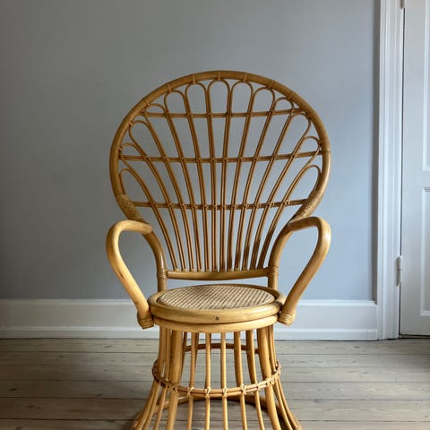 En raffineret par Wingback-stole, ikonisk model inden for britisk traditionel indretning, kendt i det franske som «fauteuil Bergère à oreilles», kendetegnet ved en høj, formet ryg med markante sidesider, der omslutter ("vinger"), designet til at beskytte mod træk og skabe en sammenkropslet og behagelig siddeposition, et karakteristisk element i indretningen af engelske landhuse.