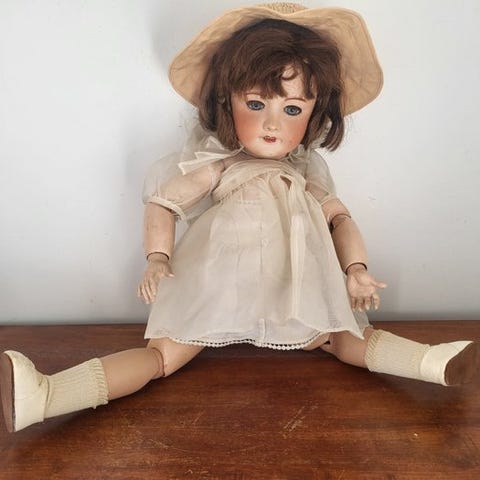 Limoges J. Balleroy bisquehoved dukke, Frankrig, 1910–1920, i god stand, monteret på en Jumeau-stemplet krop, uden originalboks. Klik på den blå "gå til varen" knap, for at købe eller byde på denne vare. Den samlede pris vil blive vist inden du afgiver dit bud.