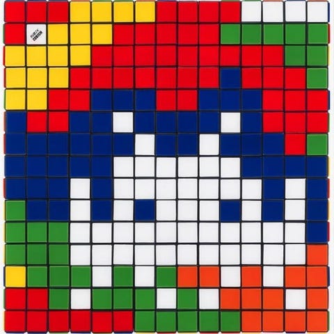 Denne keramiske flise blev skabt i 2024 af Invader i anledning af udstillingen Invader Space Station, der fandt sted i Paris i den tidligere lokaler for avisen Libération.