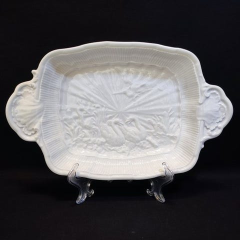 Et raffineret porcelænsvaske fra den berømte Meissen porcelænsfabrik, dekoreret med det klassiske motiv af den kinesiske røde drage. Denne historiske hofdekoration er blandt fabrikens mest prestigefyldte håndmalede designs og blev oprindeligt fremstillet udelukkende til den sachsiske hof. Dragen er mesterligt udført i en intens jernrød, med fint detaljerede skæl, flammer og den typiske kejserlige perle: et imponerende eksempel på den store kunst i Meissens malerkunst.