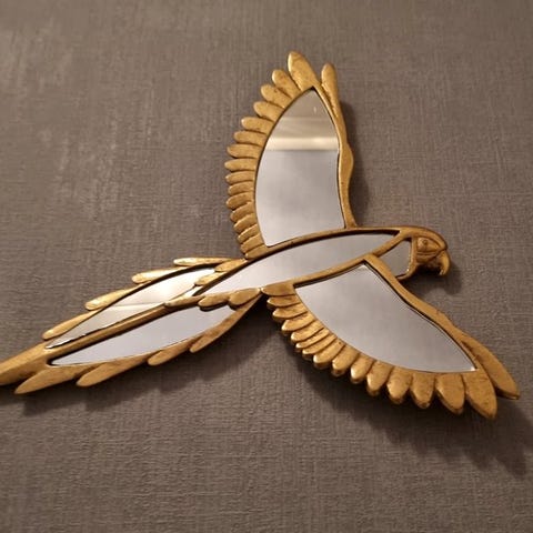 En smuk, guldbrun metal Art Deco-spejl med en liggende kvinde.