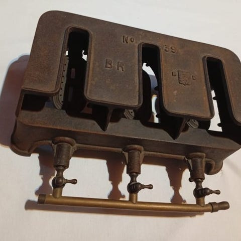 Disse er fuldt fungerende spiralformede varmeapparater, som vi har haft i vores loft, drevet af et gasfyrssystem. Købt som nye og installeret i 2017. De fungerede perfekt og havde en toårig prøvetid, mens renoveringsarbejdet foregik i et par år (2022-2024). De begyndte igen at fungere tidligt i 2024 og blev fjernet i december 2025 som en del af en ny indretningsplan.