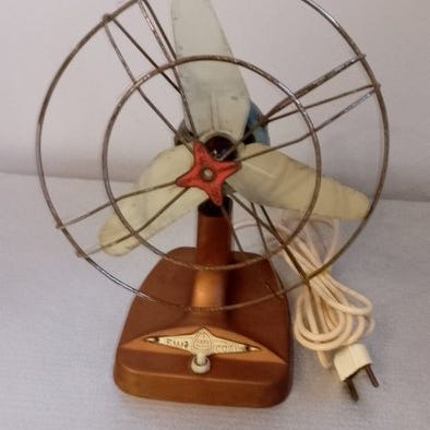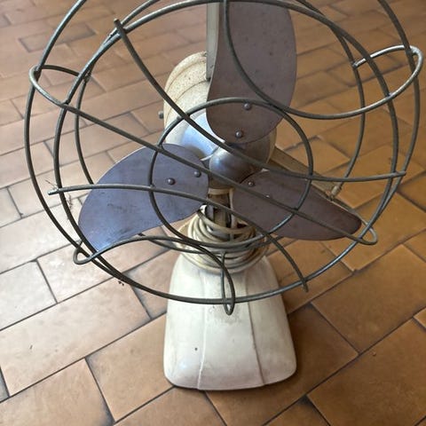 Tilgængelig er et ikonisk eksempel på japansk industriel design fra 1970'erne: Sanyo EF-6FV bordventilator. Kendt blandt samlere for sin markante ”Space Age”-æstetik, har denne model de yderst eftertragtede gennemsigtige koboltblå blade, designet til at skabe en visuel fornemmelse af afkølning også quando den står stille.
