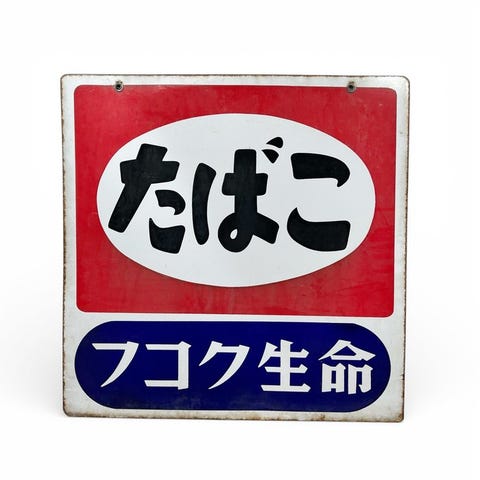Se den fantastiske visuelle effekt af dette autentiske japanske vintage emalje-skilt. Designet har en betagende farvepalet: en dyb, glansfuld koboltblå baggrund, der smukt kontrasterer med den skarpe, hvide, fede japanske typografi. I midten et strålende levende krimsonrødt emblem, indrammet af elegant stiliserede risbunde, der fanger opmærksomheden.