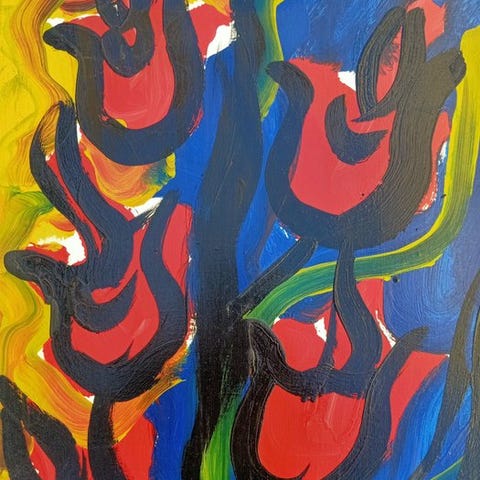 Paolo Massimo Abrans (1952), Blomstermotiv i blå vase, olie på lærred, original og unik (CM 232), underskrevet nederst til venstre, 52 × 38 cm, ca. 1990, stilleben, Italien. Klik på den blå "gå til varen" knap, for at købe eller byde på denne vare. Den samlede pris vil blive vist inden du afgiver dit bud.