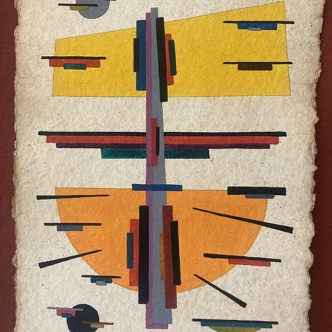 Russiske avantgarde: Suprematismen gouache fra det 20. århundrede signeret Boris Alepkow.