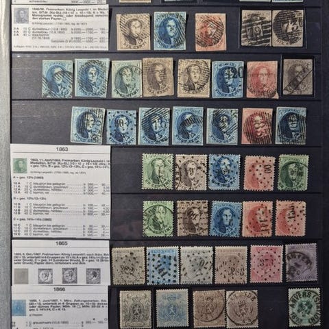 Perforerede medailloner Leopold I 10/20 cts - variationer i farvetoner og mange obliterationer