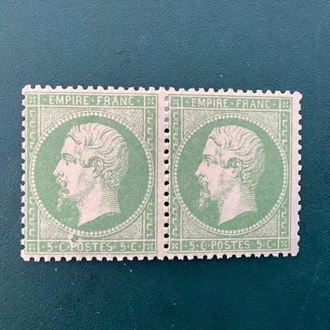 Frankrig, 1854, 5 øre Napoleon-Imperiet – Scheller godkendt, ubrugt, Yvert 12, katalogværdi €1.450 (Yvert 2022). Klik på den blå "gå til varen" knap, for at købe eller byde på denne vare. Den samlede pris vil blive vist inden du afgiver dit bud.
