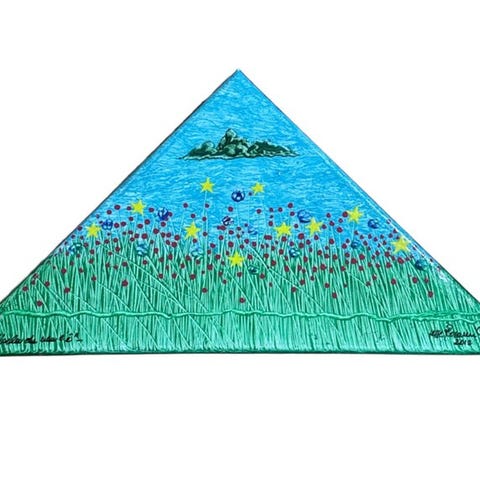 Oljemaleri på lærred (30×30 cm) af Roberto Mauri præsenterer sig som et moderne landskabsmaleri med stærk farvevirkning og en kompositionsopbygning, der er enkel, men alligevel vibrerende.