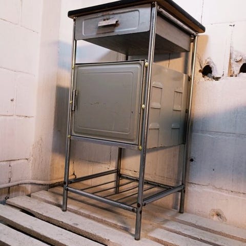 Et autentisk hospitalmedicinsk skab fra 1970'erne, lavet i Ungarn, der legemliggør den rene, funktionelle æstetik i østeuropæisk industrielt design. Oprindeligt brugt i en medicinsk setting, kombinerer skabet, der er vægmonteret, funktionalitet med en underdrejet modernistisk karakter.