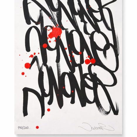 EN - Sjælden! Originalt håndtrykt serigrafi i 2 farver af graffiti- og streetart-kunstneren Lons, 50x70 cm - 2-farvet serigrafi, begrænset til kun 15
