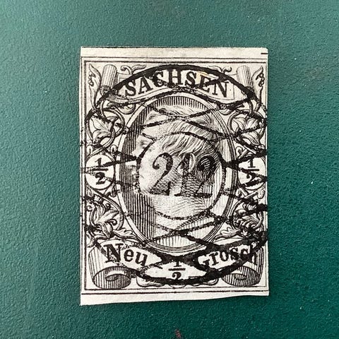 Sachsen 1850 - Saksen Dreier med fotocertifikat Rismondo og brede marginer - ...