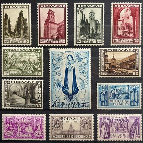 Belgien 1929 - Første Orval-serie med overtryk L og Krone. Alle frimærker med...