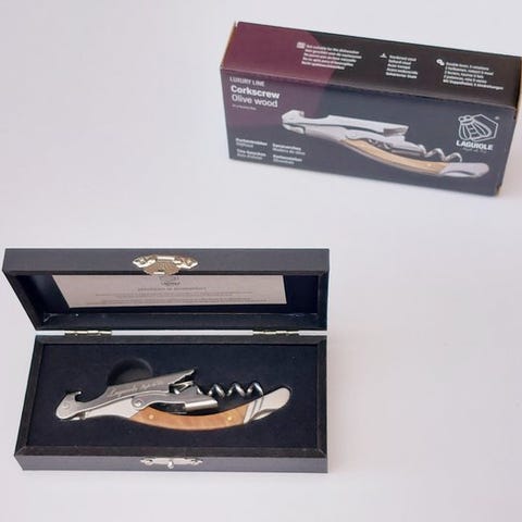 Denne smukke korkproptrækker af oliventræ som en del af din vinoplevelse.